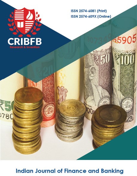 Journal Full Title: Indian Journal of Finance and Banking; Journal Abbreviation: Int. J. of Fin. & Bank.; Journal ISSN (Print): 2574-6081; Journal ISSN (Online): 2574-609X; DOI Prefix: 10.46281/ijfb; Journal Frequency: Continuous Publication (1 volume and 2 issues yearly since 2023); Article Acceptance Percentage: 26%; Publication Ethical Guide: Committee on Publication Ethics (COPE)’s; Peer-Review Policy: Double-Blind (External) Copyright and Licensing: The Author(s); Creative Commons Attribution 4.0 - International License; Publication Policy: Open-Access Journal; Authors' Geographical Diversity: International; Editorial Members' Geographical Diversity: International; Publish Mode: Publish-as-you-go; Business Model: Golden Open Access; Editors: Professor Dr. Ahmed El-Masry scopus-1.png Associate Professor Dr. Hafez Abdo scopus-1.png Citation Analysis: Scopus | Web of ScienceGoogle Scholar